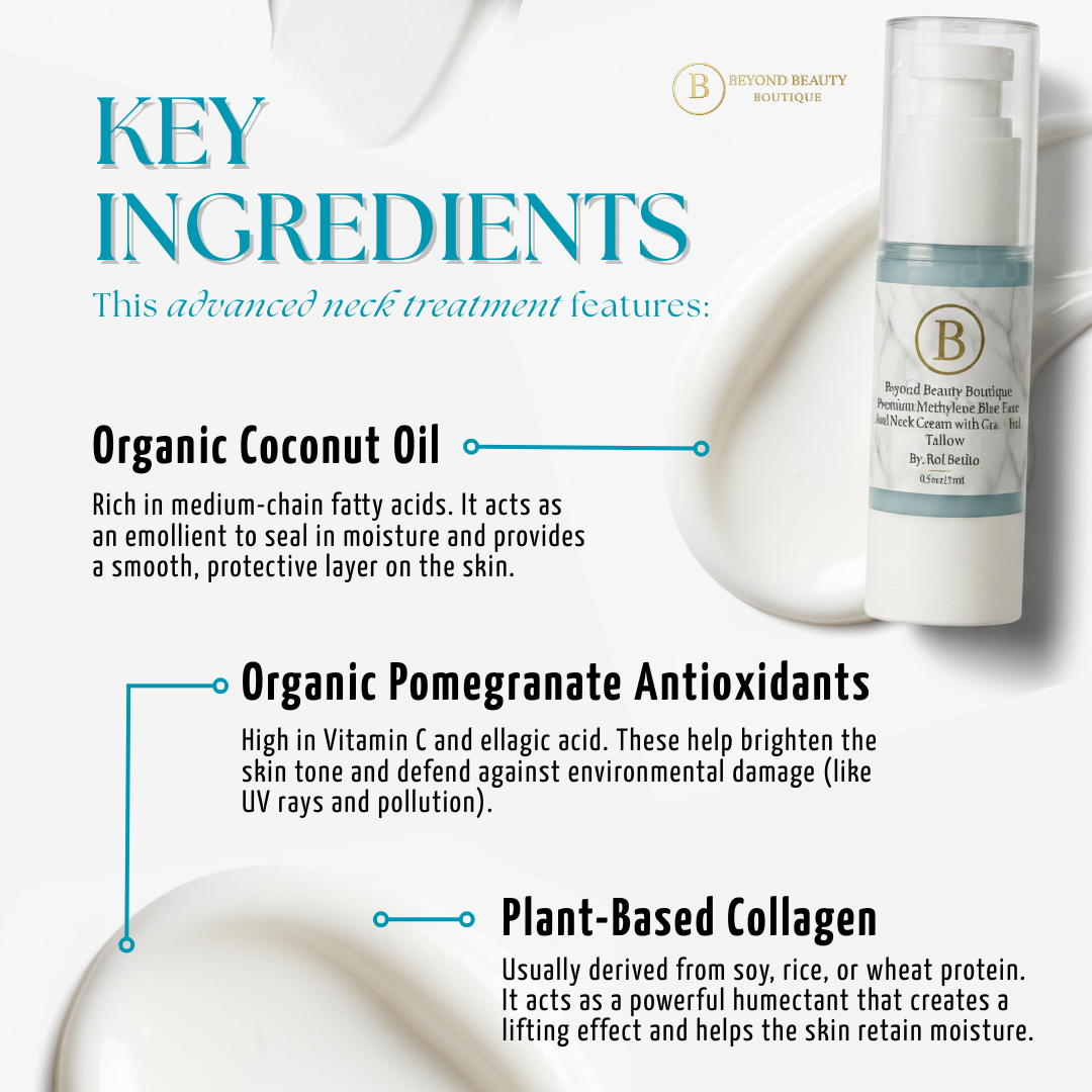 For women seeking a visibly smoother, firmer neck and décolleté, Premium Methylene Blue Face & Neck Cream delivers deeply nourishing care with a refined, elegant texture.
